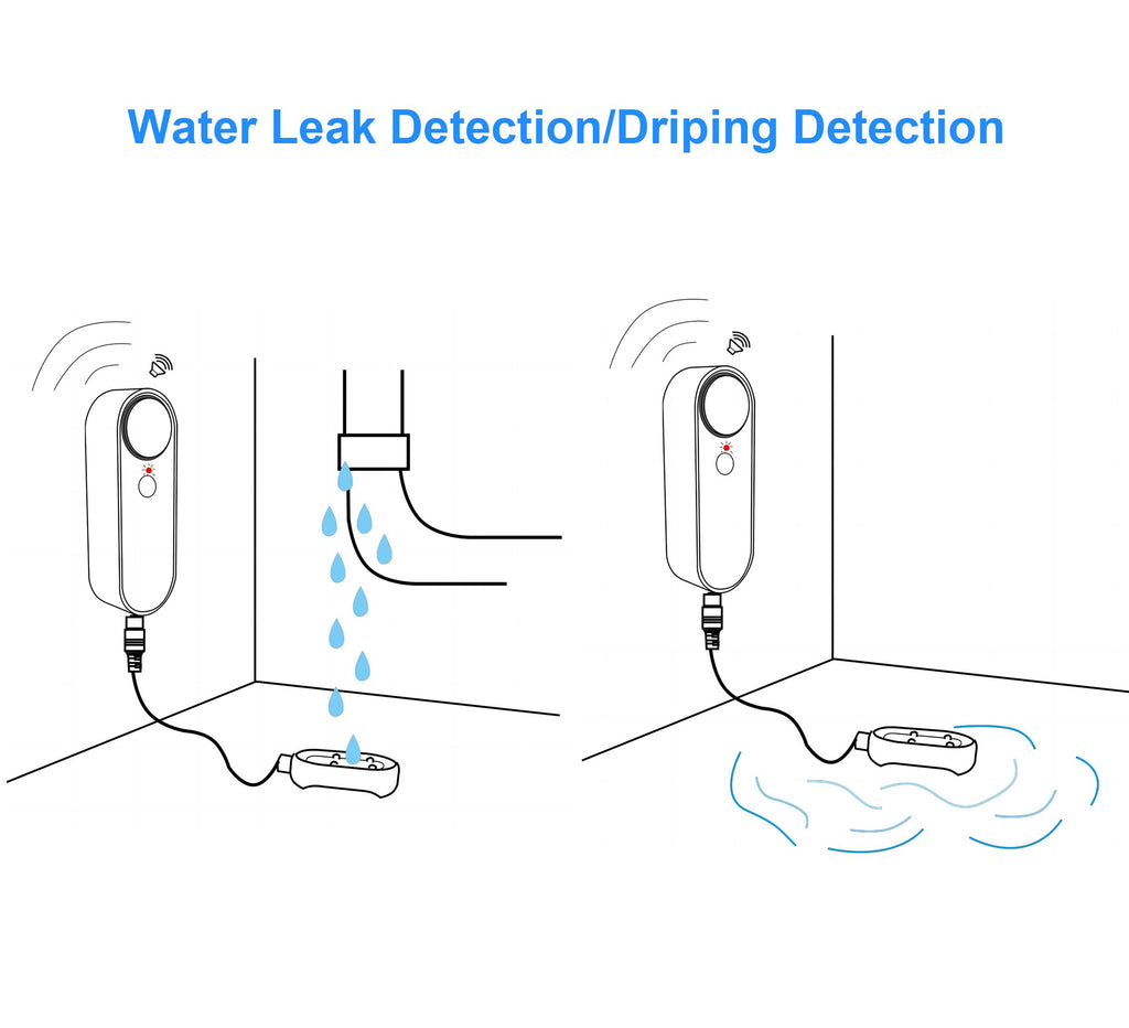 • 💧【Wide Applications】This dual probe water sensor alarm is great for swimming pool, laundry room, bathroom, basement, fish tank, water tower, sink, aquarium, pond. You can monitor water leak and water level in time on APP to protect your belongings.